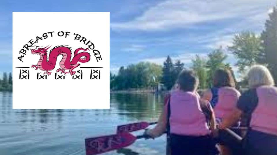 Once they got wind of a Dragon Boat team in Vancouver made up entirely of breast cancer survivors, the Lethbridge group were inspired by these women and decided to create their own dragon boat team. Soon the Calgary Canoe and Kayak Club donated a voyager canoe for the ladies to practice with. With that was born the Abreast of ‘Bridge dragon boat team.